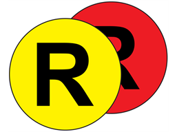Aisle floor markers. Alphanumeric aisle foor markers. Letter R. High colour contrast. Aggressive adhesive for flat sealed floors.