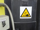 Chemical hazard safety signs. Caution corrosive. Warning safety sign, complying with ISO EN 7010, Safety Signs and Signals Regulations 1996, and the Control of Substances Hazardous to Health (COSHH) 2002.