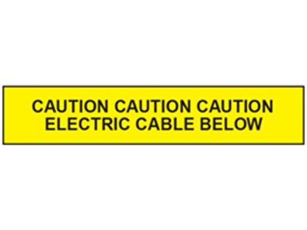 Underground warning tapes. Caution electric cable below. Construction and utilities services tape for buried cables, cabling, pipes, pipework, mains, drains, sewers and ductwork. Safety measures are covered by the Electricity at Work Regulations 1989. See NJUG (National Joint Utilities Group) guidelines for fixing location.