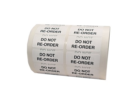 Stock control labels. Do not re-order. Suitable for warehouse, storage and handling. Supplied in rolls of 250 labels.