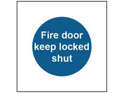 Access and emergency safety signs. Fire door keep locked shut. Mandatory safety signs to IS0 1710 and Safety Signs and Signals Regulations 1996.