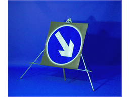 Roll up road traffic signs. Keep right symbol. For use with temporary roadworks. Class 1 standard grade retro-reflective sign welded onto flexible pvc backing, with rust proof metal collapsable tripod. Easily erected. Collapse and roll up for minimimum storage space during transportation.