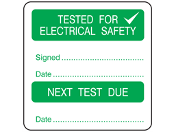 Combined status labels. Tested for electrical safety, next test due label. Supplied in packs of 100 labels.