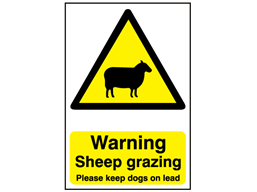 Agricultural safety signs. Warning sheep grazing, Please keep dogs on lead. Signs comply with ISO 1710 and Safety Signs and Signals Regulations 1996.