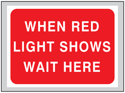 Roll up road traffic signs. When red light shows, wait here. For use with temporary roadworks. Class 1 standard grade retro-reflective sign welded onto flexible pvc backing, with rust proof metal collapsable tripod. Easily erected. Collapse and roll up for minimimum storage space during transportation.